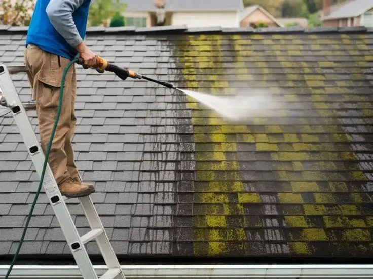 Pressure washing using high force. Soft washing uses lower pressure with cleaning solutions, often safer for siding and roofs.