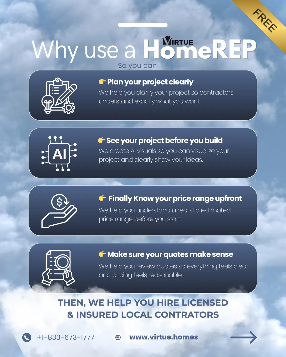 Virtue.Homes is a platform that connects homeowners with independent service providers. Unless otherwise stated, Virtue.Homes is not the contractor performing the work. All services are provided by independent contractors.